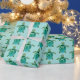 Cute gift wrap design features little blue -green turtles pattern on aqua background
