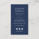 Elegant vertical business cards for your coastal based business feature a watercolor seahorse illustration with your name and/or business name beneath. Personalise the reverse side with your contact information, including three social media icons and a template field for your social media username, in white on navy blue.