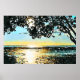 Poster featuring an original watercolor seascape sunrise image that originates from a photograph converted to a watercolor image.