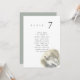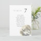 Minimalist and elegant wedding table number seating chart cards featuring a watercolor painting of a seashell. The pairing of the soft watercolor beach scene and the chic typography makes for a beautifully chic combo.