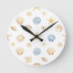 Watercolor Seashells Starfish Coastal Pattern Round Clock