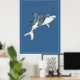 Watercolor Shark on Deep Blue Nursery Art Poster