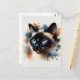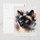 Watercolor Siamese Cat Colourful Portrait Postcard