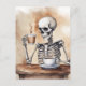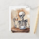 Watercolor Skeleton Enjoys Coffee Postcard