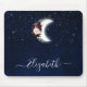 Watercolor blue night sky with stars and the moon mouse pad. Your Name in fashionable script. Includes watercolor floral. Burgundy roses, red flowers, pink roses, blue flowers and botanical greenery.