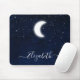 Watercolor blue night sky with stars and the moon mouse pad. Your Name in fashionable script.