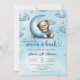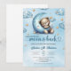Watercolor sleepy baby bear blue moon gold stars invitation