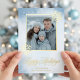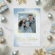 Capture the magic of the holidays with our elegant and customisable Christmas photo card. This beautiful design features a stunning watercolor-style background in cool blues and white, reminiscent of a winter snowfall. The highlight is a prominent gold-foil frame that perfectly showcases your favourite photo. Adorned with delicate, shimmering gold snowflakes, this card is a timeless way to send warm wishes to friends and family. Personalise it with your own photo and family name for a truly unique and memorable holiday greeting. Perfect for new couples, families, or anyone looking to share a special moment this Christmas. Created by Simply Farmhouse Press.