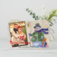 A fun watercolor painting of a happy Christmas snowman sets off your vertical framed photo. Your names along the bottom. The Merry Christmas graphic and be moved and resized as needed.