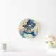 The clock did not take as long to arrive as I thought it might and was extremely well packaged. I didn't do the measurements so I didn't realize it is a little smaller than the average clock but that does not matter (just make sure you check if that's important to you).It is really nifty! It seems very solid and well made not flimsy at all. It has been going well and has kept good time in its few weeks on my wall. Nice product. Gets noticed too! Nicer in real life than the picture but true to the picture