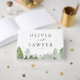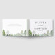 This guest book features a snowy forest in watercolor, making it perfect for winter weddings and rustic venues. The evergreen trees and falling snow create a peaceful, natural setting. Personalise the front of this woodland wedding guest book with your names and date, then let guests fill the pages with notes and memories. A small detail that adds to your decor and becomes a keepsake you’ll enjoy revisiting.