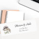 This watercolor return address label features a woodland wildlife illustration of a beautiful snowy owl in flight, a full moon, and an evergreen branch. Personalised with your name in elegant, script text, you will love this modern, nature art design.