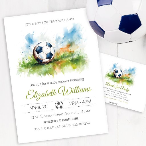 Watercolor Soccer Baby Shower Invitation
