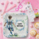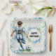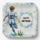 Watercolor Soccer Boy Birthday Blue Paper Plate
