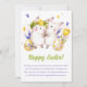 Brighten up someone's Easter with our adorable Holiday Greeting Card! Featuring sweet watercolor illustrations of cute bunnies holding hands, a cheerful yellow tulip, Easter eggs, and charming purple and yellow hearts, this card is sure to bring smiles. Send your warmest Easter wishes with this delightful design that captures the joy and spirit of the season. Perfect for spreading love and happiness to friends and family on this special day!
