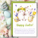 Watercolor Spring Bunny Floral Easter Holiday Card