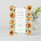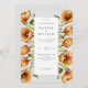 wedding invitation featuring watercolor tulips in red, yellow and orange