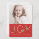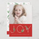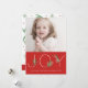 Original hand painted watercolor artwork by Paula Pecevich, La Bella Rue. One Photo placed on the top of the vertical layout with White coloured JOY with watercolor greenery, sprigs, pine branches and red berries and Red Background for your Holiday Photo Card. For enquiries about custom design changes by the independent designer please email paula@labellarue.com BEFORE you customise or place an order. Photo credit courtesy by Tim Kraaijvanger on Pixabay
