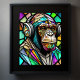 Watercolor Stained Glass Chimp Wearing Headphones Poster