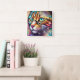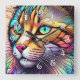 Watercolor Stained Glass Style Cat II Square Wall Clock