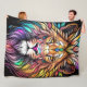 Watercolor Stained Glass Style Lion Fleece Blanket