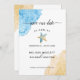Nautical Boutique Co.'s modern coastal wedding save the date features watercolor sea and sand and matching watercolor starfish accents. The elegant script typography "save our date" is paired with traditional block lettering. It's perfect for your coastal wedding in a chapel or church or your beach destination wedding. Matching set wedding suite pieces are available in our collection. #CoastalWedding #Starfish #BeachWedding