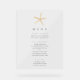 Modern, playful, and tropical, this wedding menu features a watercoloring painting of a starfish paired with chic typography.