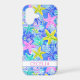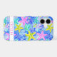 Customize this colorful watercolor starfish in blue, aqua, yellow and pink iPhone 17 case with your your name in a trendy modern CAP font in pink on white. It's so modern and trendy!