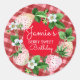 Watercolor Strawberries First Birthday Plaid Classic Round Sticker