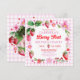 This girl's 1st birthday design features a border of watercolor strawberries and blossoms on a background of pink gingham checks, on the back of the design there is an adorable circular frame with a space for you to add your own photo. This also doubles as a lovely keepsake for your relatives and friends. You can customise this design to suit your event. See the whole matching collection.