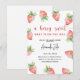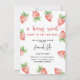 Cute girl's baby shower invitation card featuring watercolor illustration of strawberries. The text says "a berry sweet baby is on the way." Matching items available.
