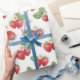 Watercolor Strawberry Fruit and Flowers Wrapping Paper