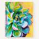 Beautiful original art painting of colourful green and blue succulent art. Bright vibrant colours. Watercolor fine art.