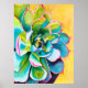 Beautiful original art painting of colourful green and blue succulent art. Bright vibrant colours. Watercolor fine art.