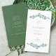 This botanical garden themed design features a dreamy mix of watercolor succulents with leaves in beautiful shades of moss green, teal and ivory and a romantic and whimsical arc of draping green vines and foliage.