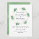 Trendy succulents wedding invitation with gold geometric frame and sage green watercolor wash reverse.