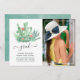 Watercolor cactus succulent graduation announcement photo card designed to be quickly and easily customised to your event specifics. A portrait style photo is recommended.