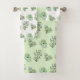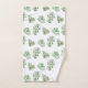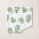 A trio of succulents in repeat pattern on light green and white bathroom towel set.
