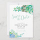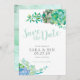 Beautiful and elegant watercolor succulent save the date featuring modern calligraphy and traditional fonts.