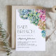 Invite guests to your event with this customisable baby brunch invitation. It features watercolour blue, green, pink and gold succulents. Personalise by adding your details. This succulent baby brunch invitation is perfect for summer baby showers.