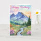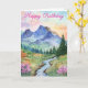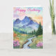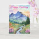 A lovely watercolor mountain during summer with trees and flowers. Suitable for a birthday card, for anyone