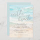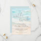 This seaside save the date features a calming blue and tan watercolor background that captures the shoreline where soft waves meet the sand. The artwork has a slightly abstract feel, giving it a relaxed coastal vibe without being overly literal.