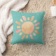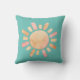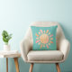 Modern sun and rays turquoise background throw pillow. An earthy style accent throw pillow for your home decor. Use solid colour pillows paired with patterned pillows with matching colours. You may also want this for your outdoor patio and can choose "outdoor" from the fabric drop down menu.