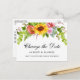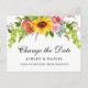 Modern Elegant Watercolor Sunflower Floral Change The Date Wedding Postponement Postcard features sunflowers, pink roses and greenery