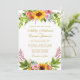 Watercolor Sunflower Boho Floral with Roses, Peonies and Greenery Wedding Invitation. Gold Script. Sunflower Golden Yellow Back.