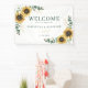 Sunflower Eucalyptus Script Wedding Welcome Banner. This cute template featuring beautiful rustic floral bouquet with modern simple typography can be easily customized for your wedding day. Add a date and names of the couple by clicking the "Personalize" button.