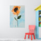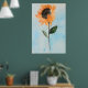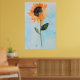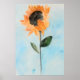 painting of beautiful single sunflower standing against blue daylight abstract.