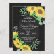 Watercolor Sunflowers Black Hexagon Wedding Invitation