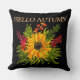 Hello Autumn. Beautiful watercolor Sunflowers floral design throw pillow. Cute, vintage, modern, pretty throw pillow. Perfect for her.