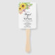 Yellow watercolor sunflowers, fall leaves and berries floral wedding program hand fan. It showcases a gorgeous bouquet of sunflowers with green leaves, autumn leaves and berries.